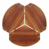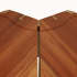 A small plant stand of a trefoil design, “Tray-Foliage” is derived from the “Tray-Foil” serving tray and is similarly made entirely of madrone. Here the exceptional beauty and variety of the wood is even more pronounced in its remarkable range of color. An incision along the length of each leg continues the floating motif of the three-part top and gives it a light, delicate character. For added stability the legs of the table are reinforced with wedged tenons, joints that once glued cannot be pulled apart.