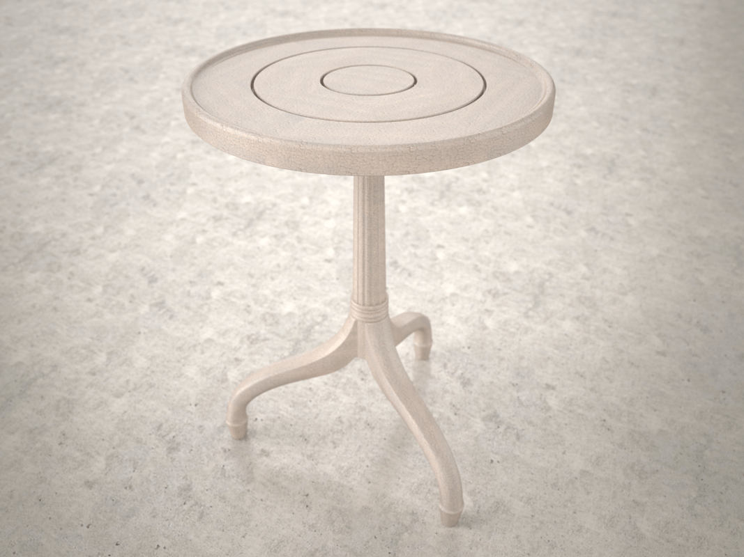 This side table is part of a collection of carved dining, lounge and poolside seating and tables. Designed for outdoor use, they are manufactured from "Philippine mahogany," and finished with an exterior-grade clear-coat and a distressed, crackled white finish.